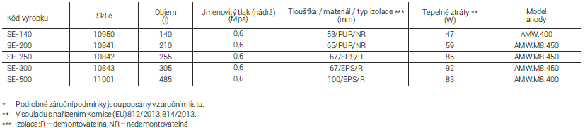 Bojlery typu SE dodáváme v litrážích 140 až 500 litrů. Typ bojleru SE z naší nabídky je standardně dodáván bez elektrického ohřevu a může být vybaven elektrickým ohřevem dle nabídky v části Elektrická topná tělesa - topné moduly T.