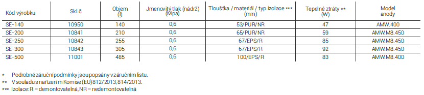 Bojlery typu SE dodáváme v litrážích 140 až 500 litrů. Typ bojleru SE z naší nabídky je standardně dodáván bez elektrického ohřevu a může být vybaven elektrickým ohřevem dle nabídky v části Elektrická topná tělesa - topné moduly T.