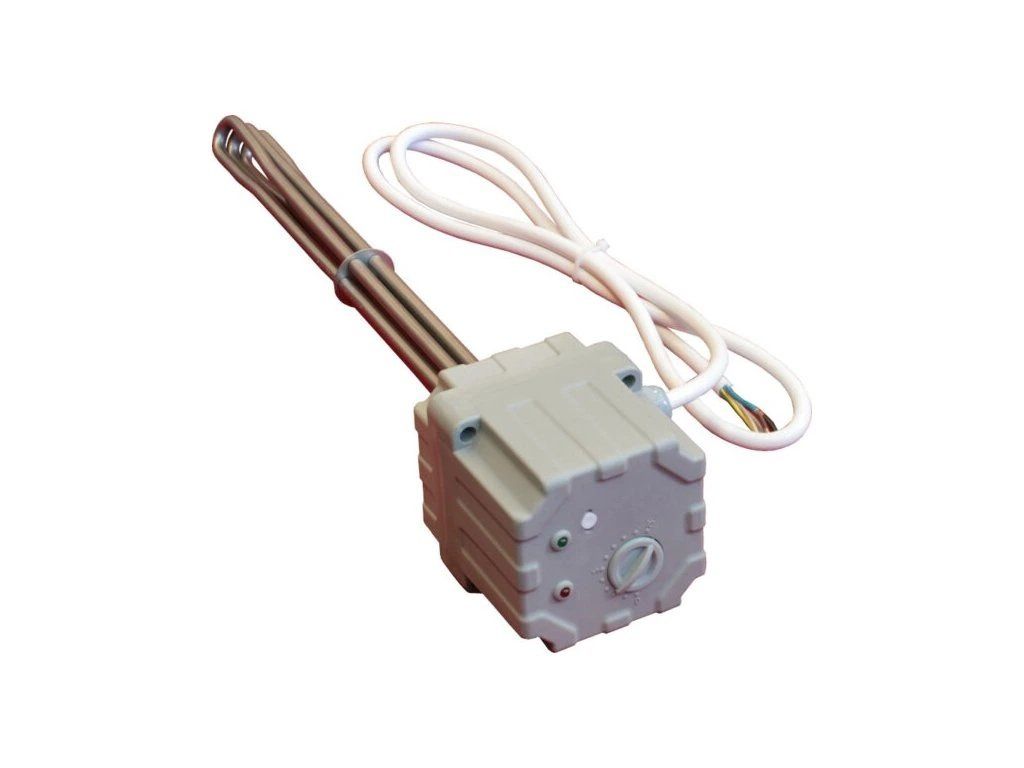Kompletní topná tělesa pro ohřívače vody s vestavěným termostatem a tepelnou pojistkou. Jsou nejlepším řešením při potřebě ohřevu většího množství vody. Topná tělesa jsou přizpůsobena ke spolupráci s externím řízením. Kvalitu práce a spolehlivost zajišťuje vestavěný třífázový termostat firmy COTHERM s možností nastavení spínání v oblasti 20-85 stupňů Celsia a obsahující integrovaný bezpečnostní omezovač teploty rozepínající při teplotě 90 stupňů Celsia. Materiál trubky topného tělesa Cu/Ni, Materiál hlavy šroubení mosaz. Není galvanicky izolováno.