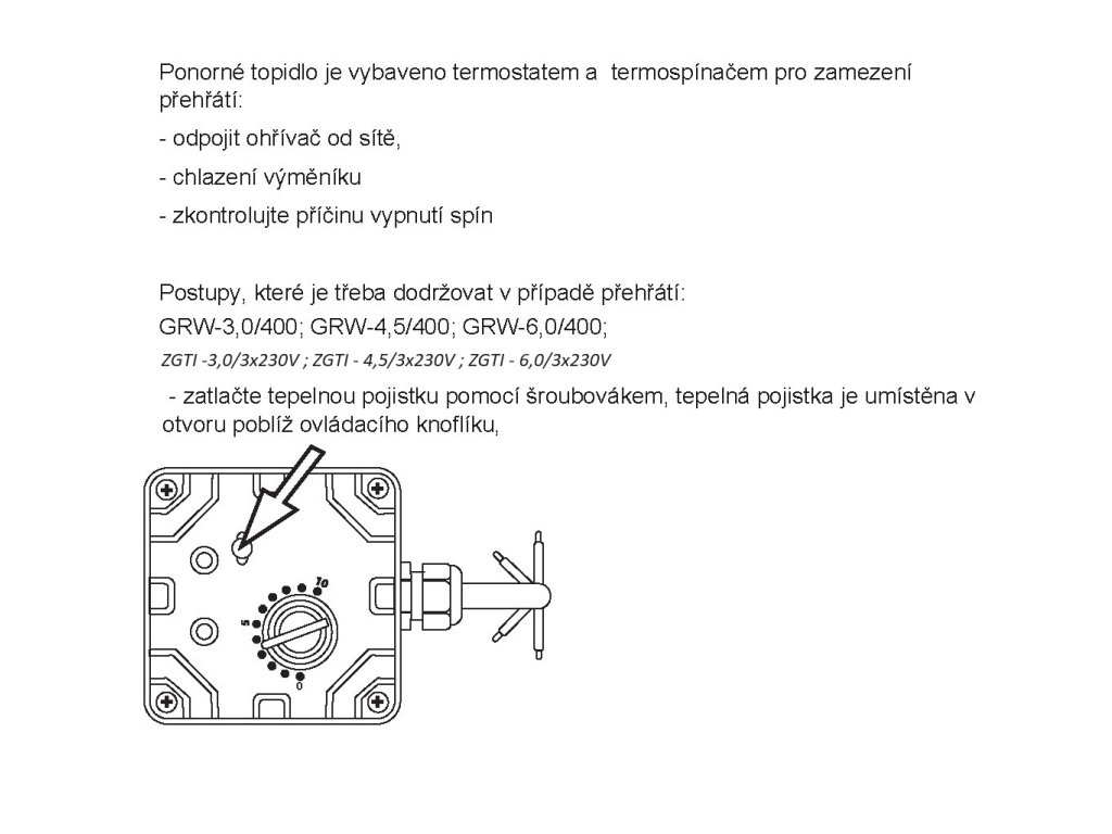Automatické vypnutí topné jednotky je řízeno termostatem a v případě jeho poškození neautomatickým omezovačem teploty, který pracuje při teplotě vody 98 (0/-8) °C.