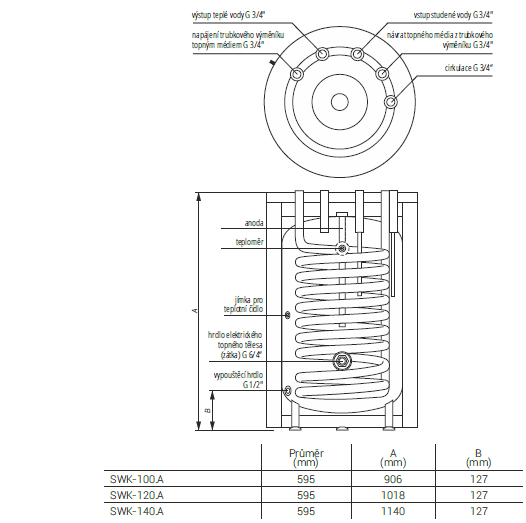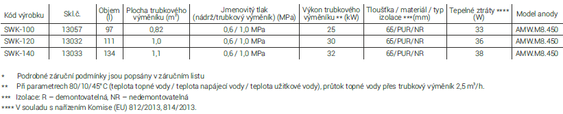 Kombinovaný bojler typu "SWK" dodáváme v litrážích 100, 120 a 140 litrů. Zásobníkový bojler SWK obsahuje jeden výměník v nádrži, která je elektrostaticky smaltovaná. Tato moderní technologie umožňuje zajistit přesnou, rovnoměrnou tloušťku ochranného povrchu která spolu s vyšší elasticitou významně přispívá k významnému zvýšení odolnosti zásobníku proti korozi, prorezivění. Zásobník je vybaven kolekcí vstupů tak, aby bylo možno jej využít při variantách zapojení shora.