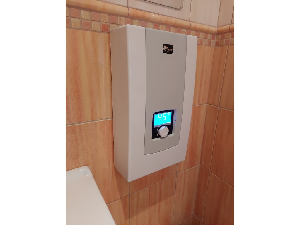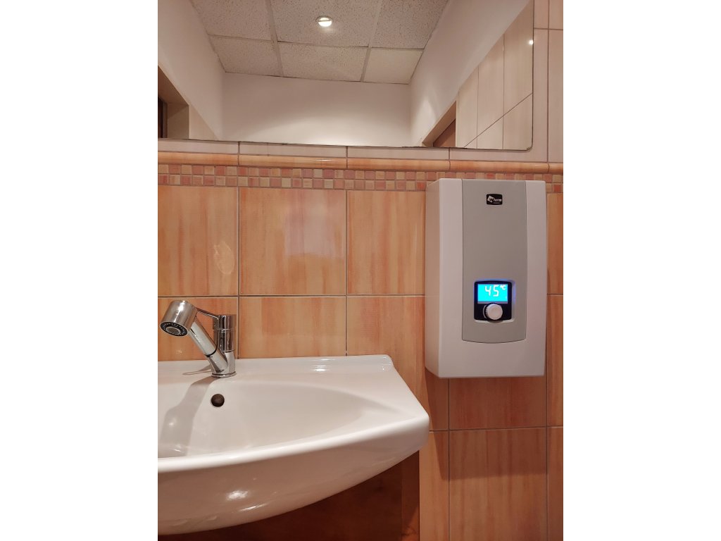 Tento tlakový průtokový ohřívač je dokonalým zdrojem teplé vody pro rozvod s více odběrnými místy v rodinných domcích, bytech, sociálních zařízeních. Velice jednoduchá, moderní obsluha otočným ovladačem s okamžitým zobrazením nastavené teploty na LCD displeji. Tři paměti pro nejčastěji používané teploty - aktivujete pouhým stlačením otočného ovládače. Jednoduchým přístupem je možno sledovat pracovní parametry ohřívače jako: vstupní a výstupní teplota vody, aktuální příkon průtokového ohřívače, průtok vody přes ohřívač a další. Použitý, ulomený horní roh krytu.