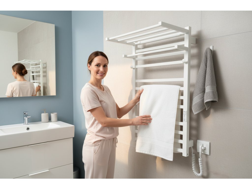 Nástěnná police HF Leeds o rozměru 520 x 284 mm je praktickým doplňkem, který rozšíří funkčnost vašeho elektrického koupelnového sušáku. Police HF Leeds je vyrobena z oceli s antikorozní úpravou a má černý nebo bílý nátěr. Vzhledem k tomu, že materiál a povrchová úprava jsou shodné s materiálem koupelnového radiátoru na ručníky, bude jejich ideálním doplňkem. Polička má háčky a další příčky, které lze použít k uložení i sušení ručníků a dalších věcí. Police HF Seeds má speciální upevňovací prvek, který umožňuje její přímé připevnění k vyhřívanému věšáku na ručníky, aniž by bylo nutné ji montovat na zeď.